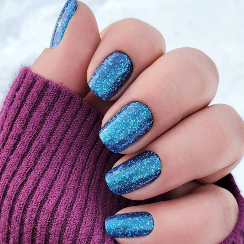Make a big statement with Dallas Darling, a deep teal with turqupose and purple glitter!