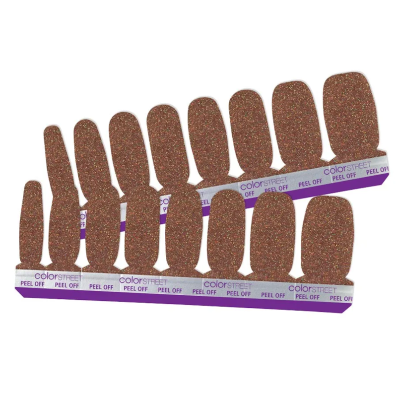 Sahara Jewel brings serious glitz to your fingertips with multicolored glitter on earthy brown.